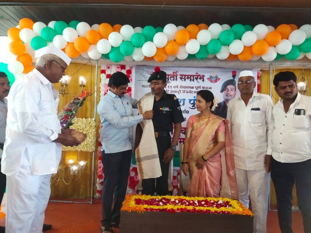आंबेगाव तालुक्यातील पारगाव शिंगवे येथील योगेश यमनाजी पुंडे १९ वर्षे सैन्यदलाल देशसेवा पुर्ण करुन सेवानिवृत्त झाल्याबददल मित्र परीवाराने केला सक्तार सभारंभ.