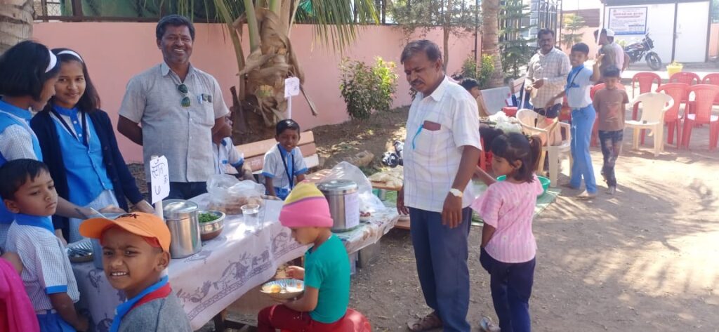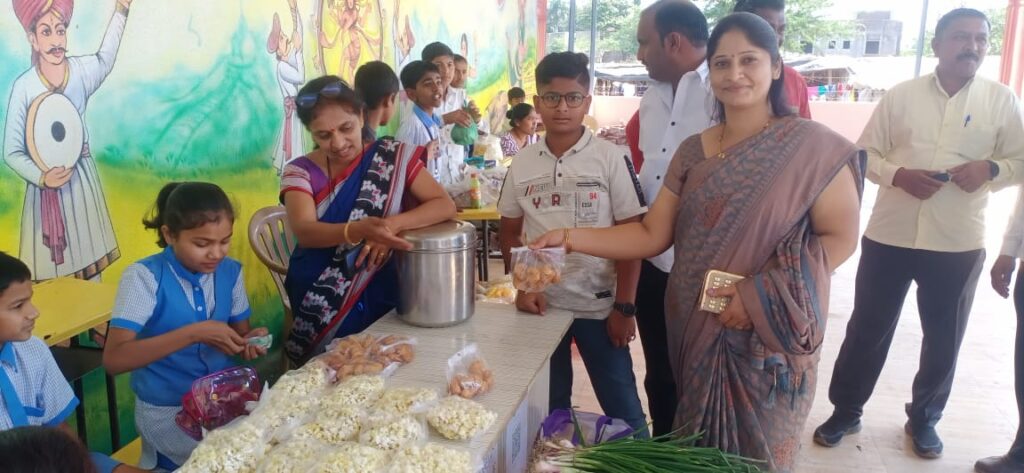 या बाजारात विद्यार्थ्यांनी पालकांच्या मदतीने विविध स्टॉल लावले होते. यामध्ये पालेभाज्या, फळे, पाणीपुरी, मिसळ, इडली सांबर, गुलाबजाम, ओली भेळ, भजी पाव, दैनंदिन गरजेच्या वस्तूंचे स्टॉल लावले होते. काहींनी वेगवेगळ्या खाद्यपदार्थांचे स्टॉल लावले होते. या सर्व वस्तूंची खरेदी करण्यासाठी पालक ग्रामस्थ व महिला भगिनींनी मोठ्या प्रमाणात गर्दी केली होती.