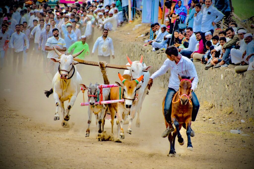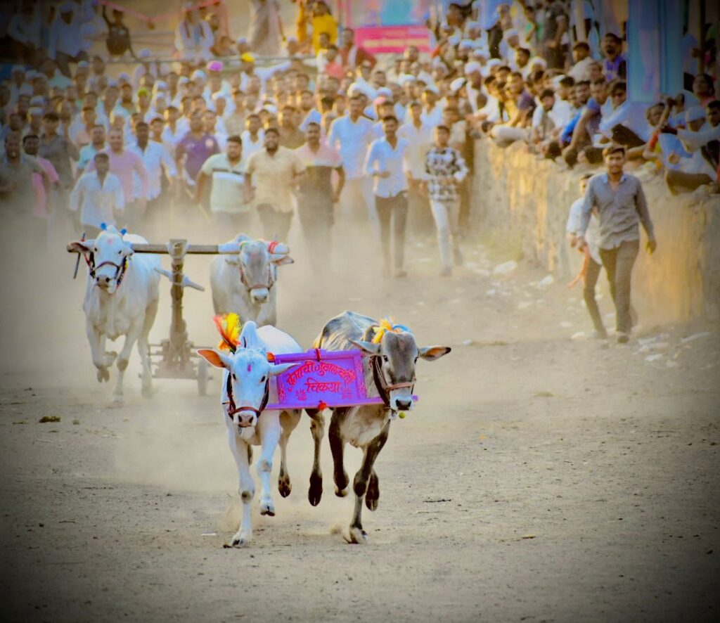 या बैलगाडा शर्यती पाहण्यासाठी मोठ्या संख्येने ग्रामस्थ उपस्थित होते.