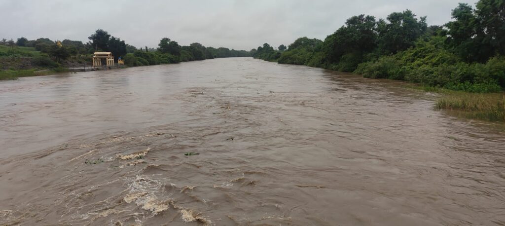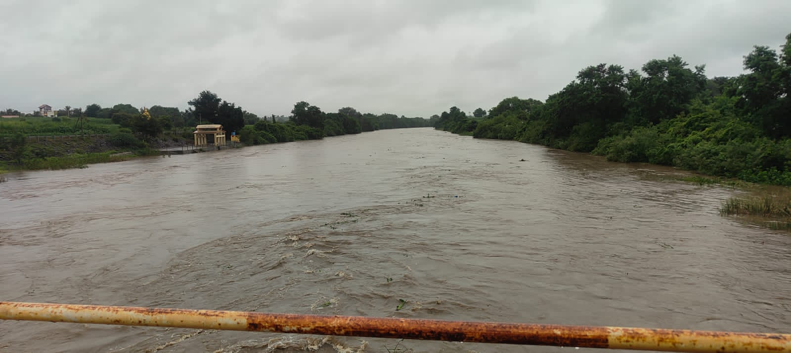 आंबेगावात पावसाची संततधार, घोडनदी दुथडी भरून वाहू लागली.