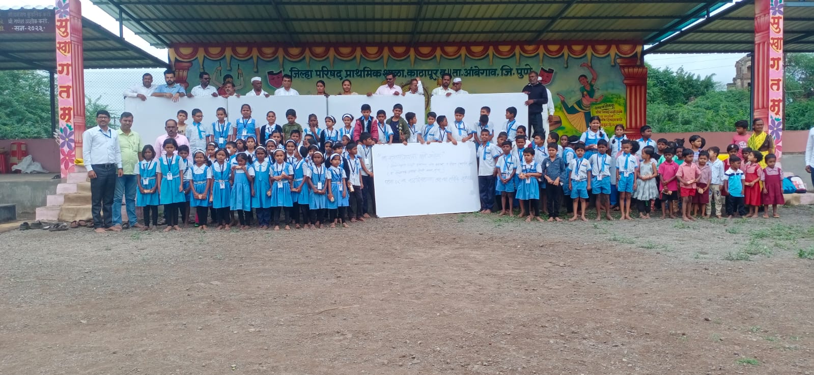 काठापूर बुद्रुक (ता.आंबेगाव) येथील जिल्हा परिषद प्राथमिक शाळेमध्ये एक ते सातवी पर्यंतचे वर्ग असून.येथे 110 विद्यार्थी शिक्षण घेत आहेत. या शाळेला अत्याधुनिक व्हाईट बोर्ड भेट म्हणून देण्यात आले.शांतारामदादा घुले यांच्या वाढदिवसाचे औचित्य साधून हे बोर्ड देण्यात आले. यावेळी भीमाशंकर सहकारी साखर कारखान्याचे संचालक बाळासाहेब घुले, सरपंच अशोक करंडे ,माझी उपसरपंच विशाल करंडे,पप्पू खुडे, कान्हु करंडे, रोहिदास तुळे, सोसायटीचे चेअरमन कुंडलीक जोरी, शाळा व्यवस्थापन समितीचे अध्यक्ष राहुल भुरके ,उपाध्यक्ष काळुराम टिंगरे, प्रशांत घुले,ग्रामपंचायत उपसरपंच दादाभाऊ गायकवाड, पुनम करंडे, अर्चना जाधव, ग्रामस्थ शाळा व्यवस्थापन समितीचे सदस्य, मुख्याध्यापक नंदकुमार चासकर ,दिनेश तोळे, उत्तम वाव्हळ, सुरेश भागवत उपस्थित होते.यावेळी प्रत्येक वर्गासाठी एक असे सात बोर्ड को देण्यात आले. त्याचप्रमाणे विद्यार्थ्यांना वह्या ,पेन, खोडरबर व खाऊचे वाटप करण्यात आले. शांतारामदादा घुले यांचा वाढदिवसाच्या निमित्ताने दरवर्षी विद्यार्थी व शाळेसाठी विविध स्वरूपाचे उपक्रम राबवले जातात. यावर्षी व्हाईट बोर्ड दिल्याने विद्यार्थ्यांना आधुनिक पद्धतीने शिक्षन घेता येणार आहे.असे सरपंच अशोक करंडे म्हणाले.