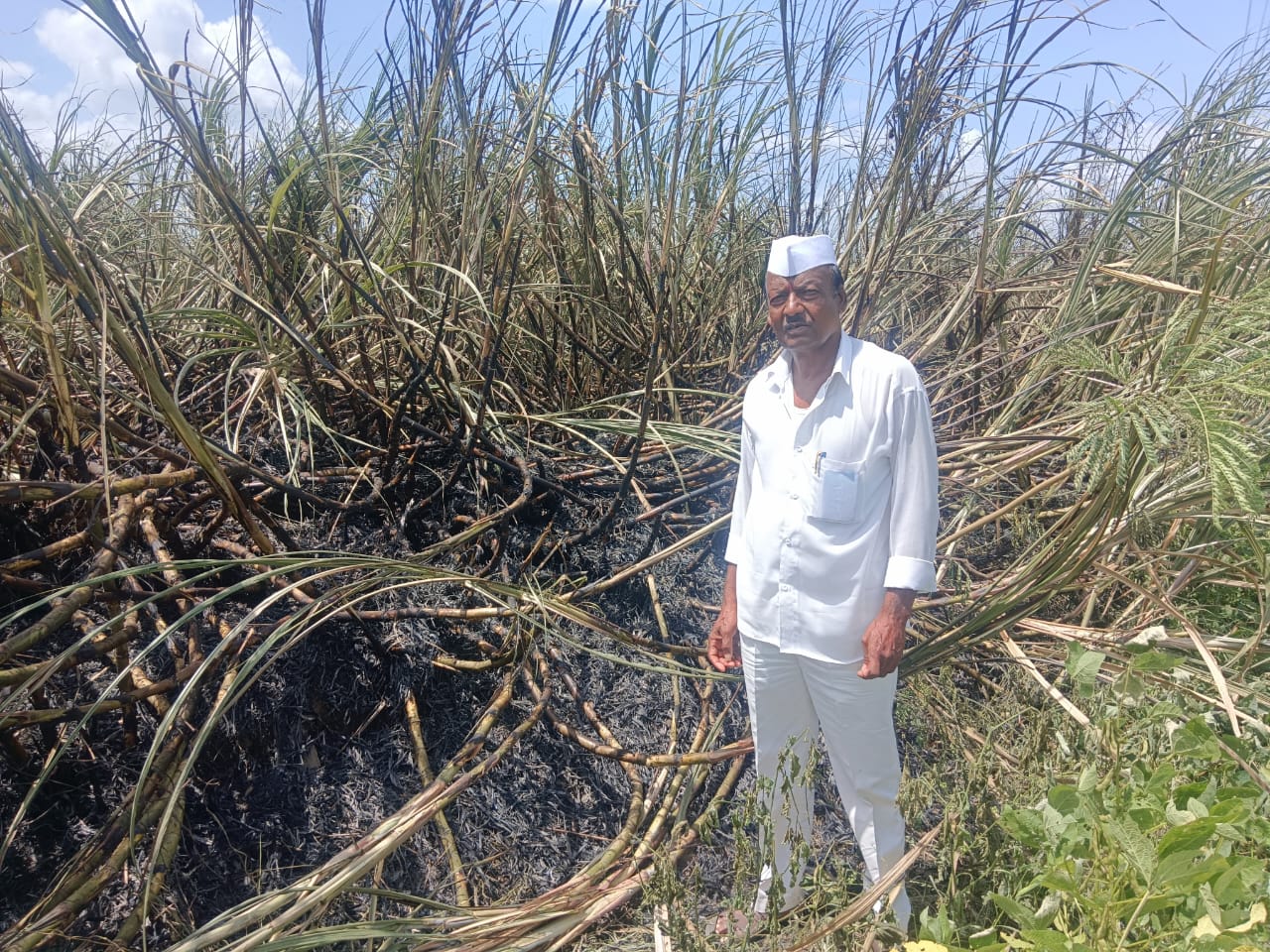 काठापूर बुद्रुक तालुका आंबेगाव या ठिकाणी पांडुरंग वस्ती येथे गट नंबर 419 यामध्ये शेतकरी सुभाष संपत जाधव यांनी एक वर्षापूर्वी आडसाली उसाची लागवड केली होती या उसाच्या शेताच्या वरून विजेच्या तारा जात होत्या या तारांमध्ये शॉर्ट सर्किट झाल्याने शेतकऱ्याचे नुकसान झाले आहे .काठापूर बुद्रुक या ठिकाणी एमएस ईबी बोर्ड असल्याने त्याचप्रमाणे गावातील विद्युत मोटारी आहेत यांना विज पुरवठा केला जातो. त्यामुळे गावात मोठ्या प्रमाणात विजेचे खांब विजेच्या तारा पसरलेल्या आहेत.अनेकवेळा गावातील शेतकऱ्यांचा ऊस यामुळे जळत असतो. शेतकरी सुभाष संपत जाधव यांचा ऊस जळाल्याने शेतकऱ्यांचे नुकसान झाले आहे. प्रशासनाने दखल घेऊन या उसाचा पंचनामा करून सदर शेतकऱ्यांना नुकसान भरपाई मिळाली पाहिजे अशी मागणी शेतकऱ्यांकडून करण्यात आली आहे.